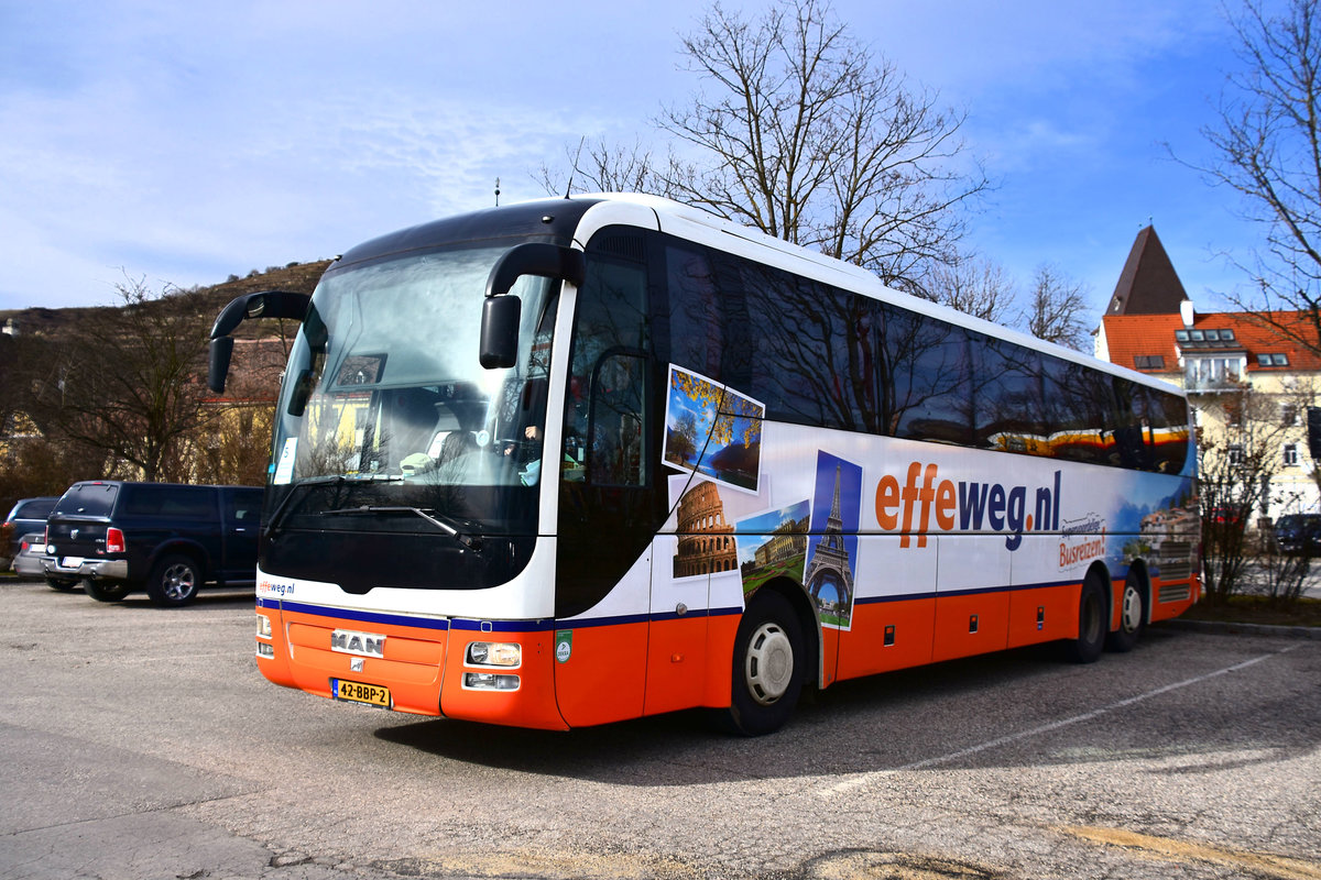Van Hool TX16 von effeweg.nl aus den Niederlanden mit Anhänger im Stadthafen Sassnitz.